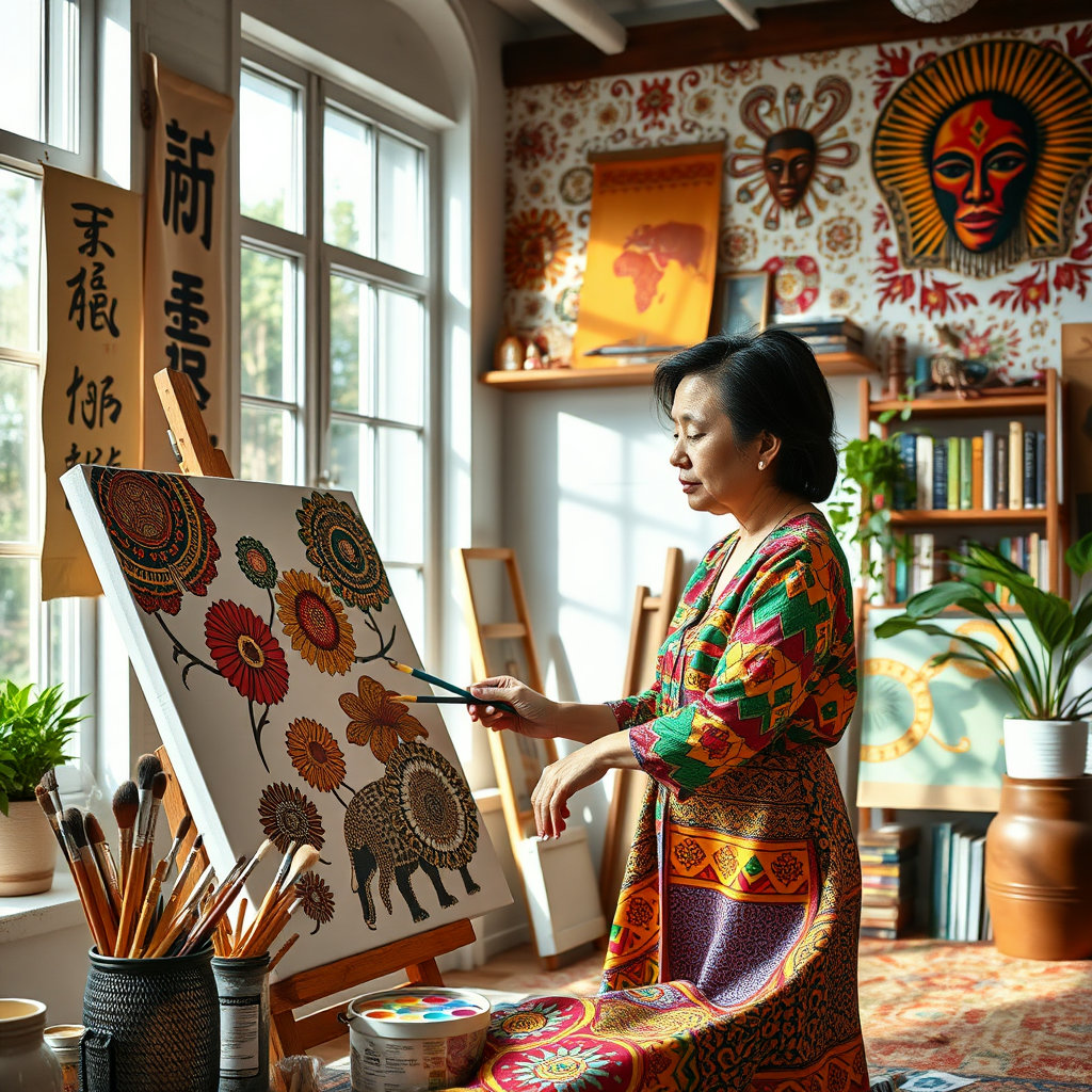 아프리카와 동양의 예술적 만남은 문화적 교류의 새로운 장을 열고 있습니다. 아프리카의 전통 예술은 강렬한 색채, 리듬감 있는 패턴, 상징적인 조각으로 유명합니다. 반면 동양 예술은 자연과 인간의 관계, 여백과 균형, 철학적 사유를 강조하는 특징을 가지고 있습니다. 이 두 흐름이 만날 때, 아프리카 예술가들은 동양 예술을 단순히 모방하는 것이 아니라 자신들의 문화적 뿌리에 맞게 재창조하고 있습니다.